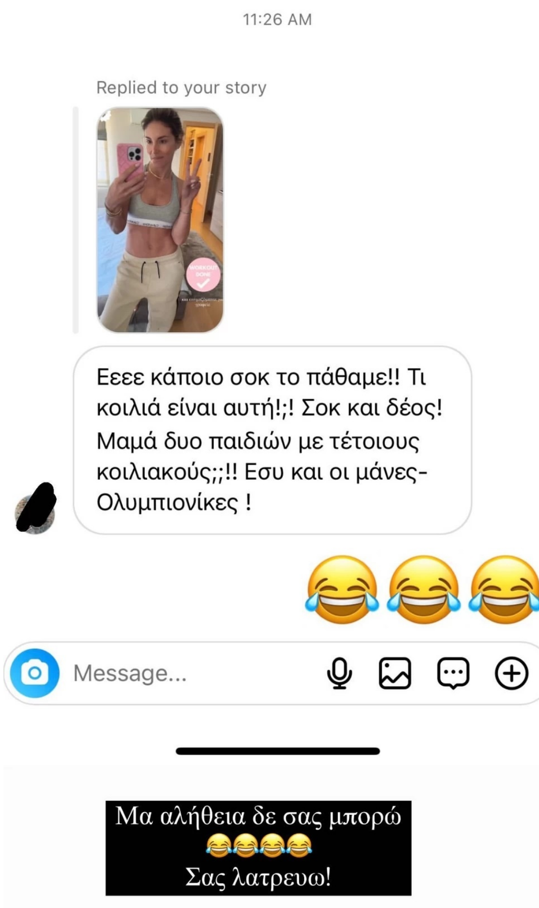 Σε επόμενο στόρι της ανέβασε την απάντηση ενός από τους ακόλουθούς της που της έγραφε: