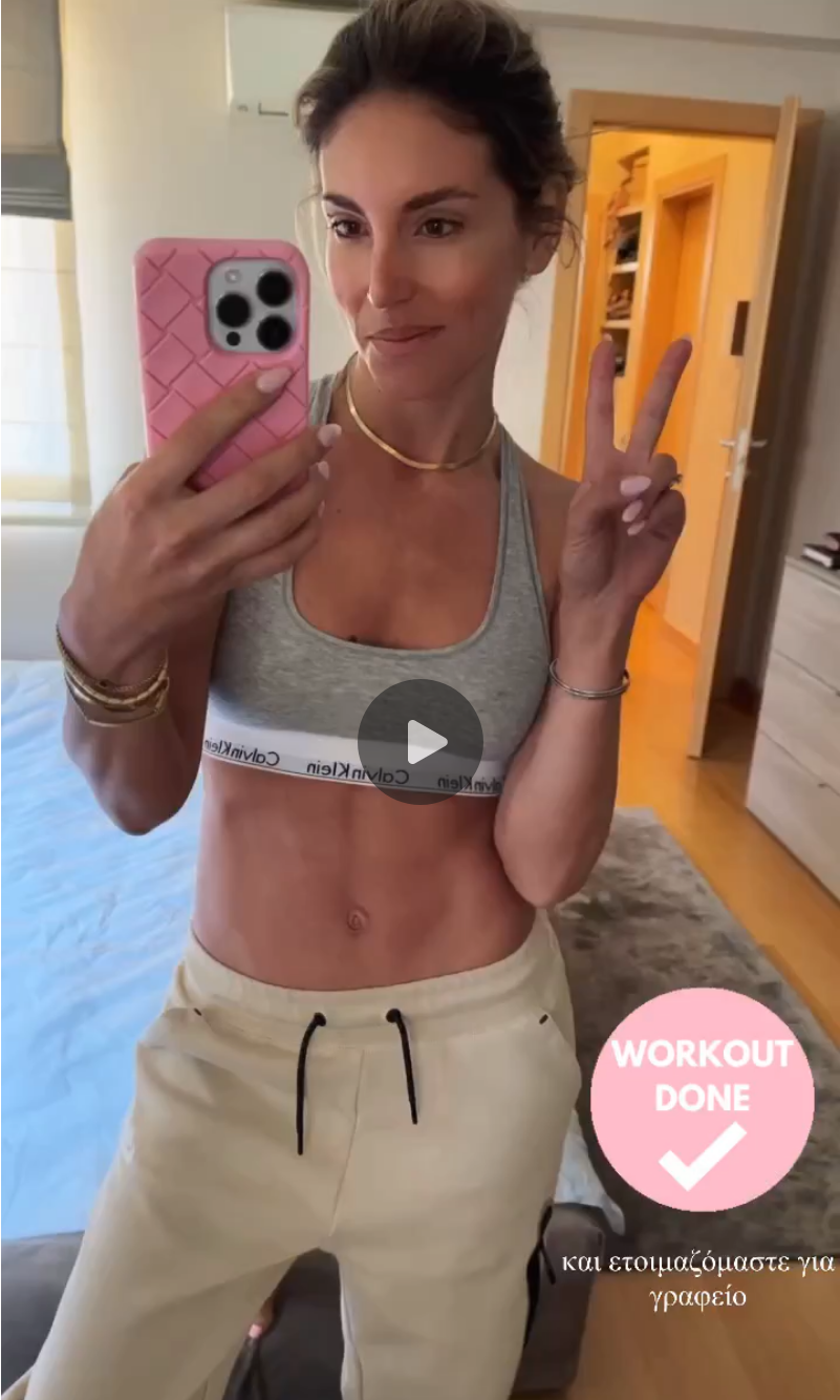 Η Αθηνά Οικονομάκου ανέβασε ένα στόρι στον προσωπικό της λογαριασμό στο Instagram φορώντας αθλητικό τοπάκι και φόρμα κάνοντας το σήμα της νίκης. Φυσικά, οι ακόλουθοί της εστίασαν στους καλογραμμωμένους κοιλιάκους της, καθώς, μην ξεχνάμε πως είναι μητέρα 2 παιδιών. Η ίδια έγραψε πως «Workout done και ετοιμαζόμαστε για το γραφείο».