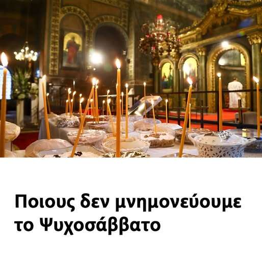 Κατά τα δύο μεγάλα Ψυχοσάββατα η Εκκλησία μας καλεί σε μία παγκόσμια ανάμνηση «πάντων των απ’ αιώνος κοιμηθέντων ευσεβώς επ’ ελπίδι αναστάσεως ζωής αιωνίου». Μνημονεύει: