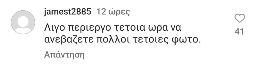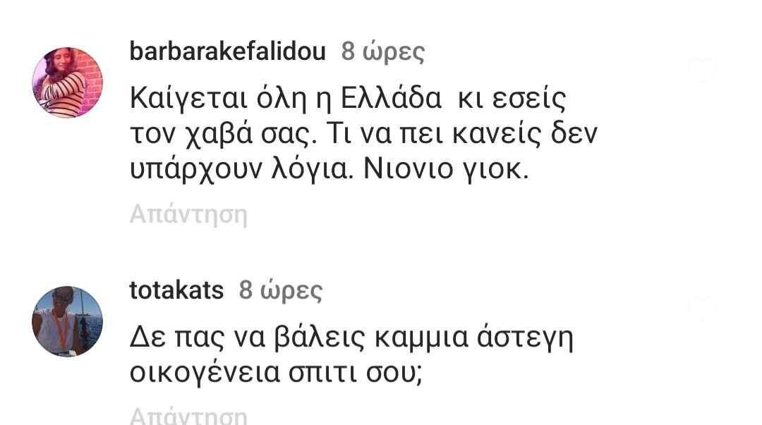 Η Δέσποινα Βανδή έκανε και μια ανάρτηση στον λογαριασμό της στο Instagram με φωτογραφίες δικές της και του Βασίλη Μπισμπίκη από το κατάλυμα στο οποίο έμειναν στην Κρήτη, κυρίως ποζάροντας στην πισίνα του. Αρκετά από τα σχόλια ήταν κολακευτικά ωστόσο καθώς η χώρα μας παλεύει με τις φωτιές αρκετός κόσμος έκρινε και το έδειξε με τα σχόλια του πως δεν ήταν πρέπον ενώ άνθρωποι χάνουν τις περιουσίες τους και τα σπίτια τους και κινδυνεύει η ζωή τους, κάποιοι μέσω social να επιδεικνύουν χλιδή και ξένοιαστες στιγμές διασκέδασης. Κάτι ανάλογο είχε συμβεί και πέρσι την περίοδο των φωτιών καθώς και στα Τέμπη. Φυσικά το πως βιώνει ο καθένας οποιαδήποτε εθνική και μη τραγωδία είναι υποκειμενικό και ο κόσμος ειδικά μέσω Internet θα ξεσπάει και θα λέει τη γνώμη του, εξάλλου είναι και το τίμημα της δημοσιότητας για τους celebrities. Δείτε την ανάρτησή της Δέσποινας και μερικά από τα επικριτικά σχόλια.