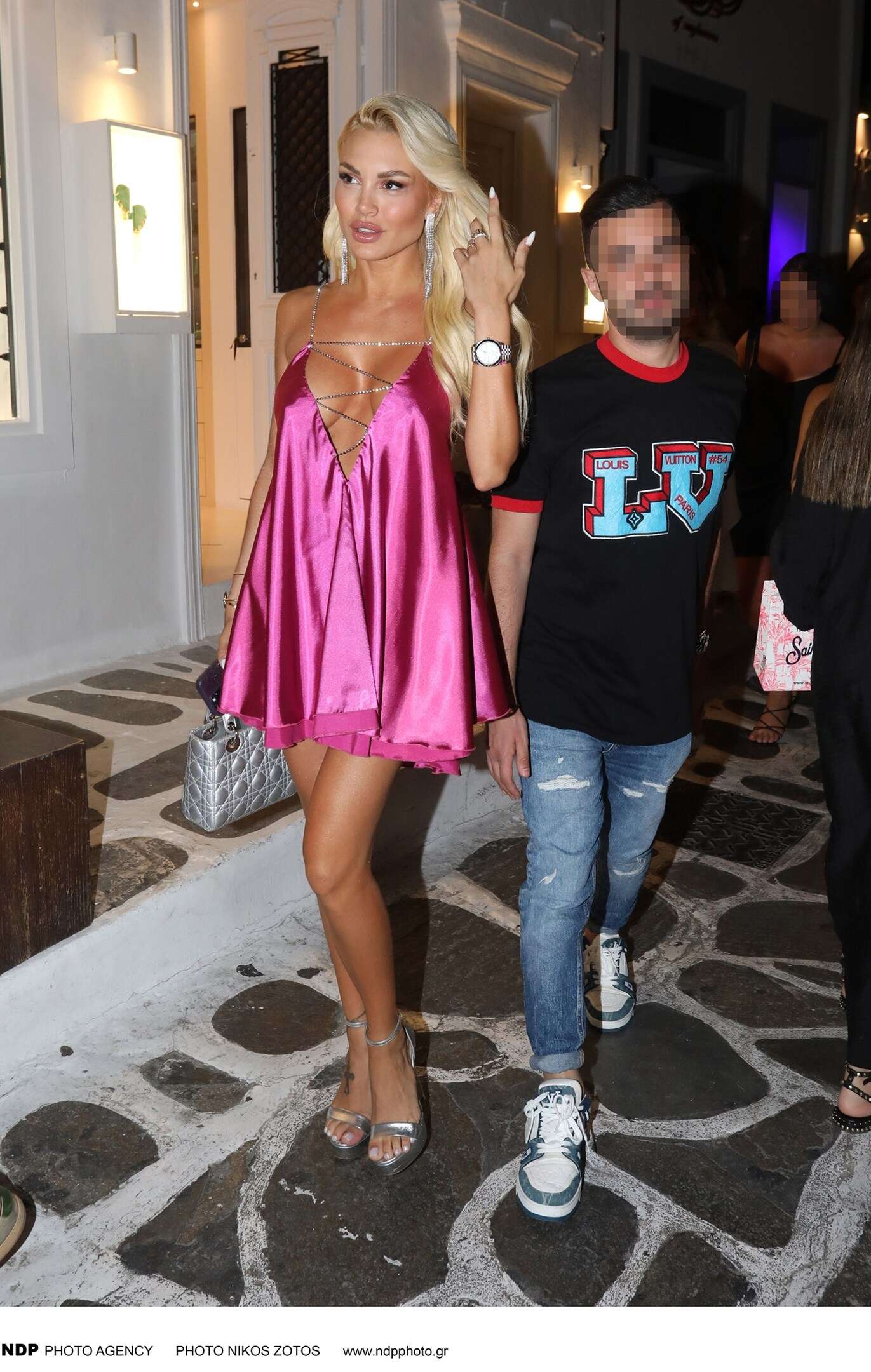 Με ένα φούξια φόρεμα και με ντεκολτέ «κόλαση» συγκέντρωσε όλα τα βλέμματα πάνω της, στα Ματογιάννια.