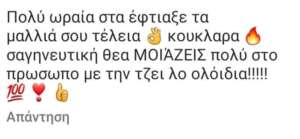 Κάποιοι από τους followers της μάλιστα, πρόσεξαν ξανά αυτή την ομοιότητα ενώ ανέφεραν πως θα ήταν ωραίο να κρατήσει αυτό το μάκρος στα μαλλιά της. Και στο παραπάνω βίντεο με τον κομμωτή της ακούγεται μία συνεργάτης της Έλλης Κοκκίνου να της λέει πόσο εντυπωσιακή είναι με αυτό το look και θα έπρεπε να το διατηρήσει, ωστόσο η ίδια δεν έδειξε μεγάλη θέρμη, αφού ανέφερε πως δεν θα «μπορεί να κοιμηθεί με τόσο μαλλί».
