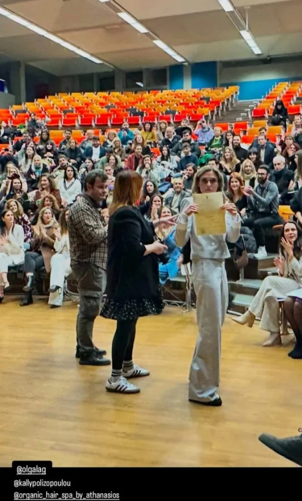 Η στιγμή ήταν ιδιαίτερα συγκινητική καθώς παρέλαβε το πτυχίο έχοντας στην αγκαλιά της την κόρη της. Η 1,5 έτους Μέλια – Αφροδίτη ήρθε στον κόσμο το καλοκαίρι του 2023.