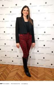 Τα αξεσουάρ της ήταν ένα περιδέραιο και ένα κρεμαστό με τα αρχικά των παιδιών της Νάγια, Μάγια και Ιωάννης. Τα σκουλαρίκια της ήταν καρφωτά και το μακιγιάζ της σε γήινους τόνους.