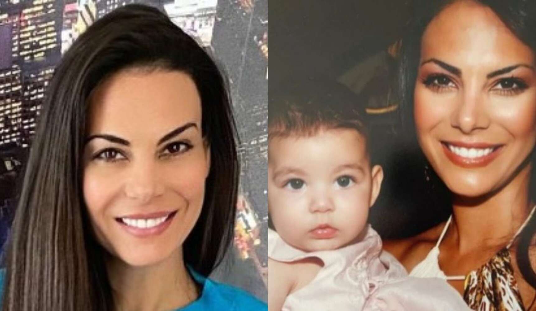 Ντυμένη με ένα σατέν μπλε φόρεμα με ντραπέ ντεκολτέ, η παρουσιάστρια πόζαρε ευτυχισμένη δίπλα στην κόρη της.