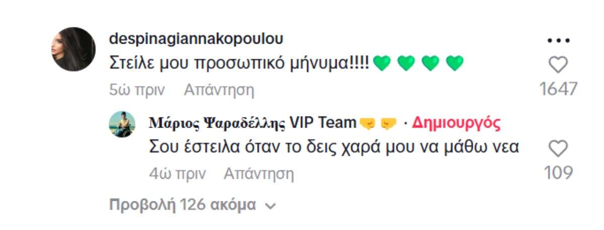 Τώρα, λοιπόν, ο Μάριος δεν κατάφερε να βρει εισιτήριο για τον πέμπτο τελικό στο ΟΑΚΑ και εξέφρασε τη λύπη του στο Tik-Tok, λέγοντας: «Το γήπεδο για το αυριανό ματς με τον Ολυμπιακό είναι sold out, δυστυχώς δεν θα καταφέρω να πάω. Στενοχωριέμαι που είναι αλήθεια, αλλά κάνω αυτό το βίντεο γιατί είμαι ένα παιδί που σέβομαι και δεν το παίζω τζαμπατζής και θα κάτσω στην τηλεόρασή μου να παρακολουθήσω το ματς. Καλή επιτυχία και στις δύο ομάδες, να νικήσει ο καλύτερος!»