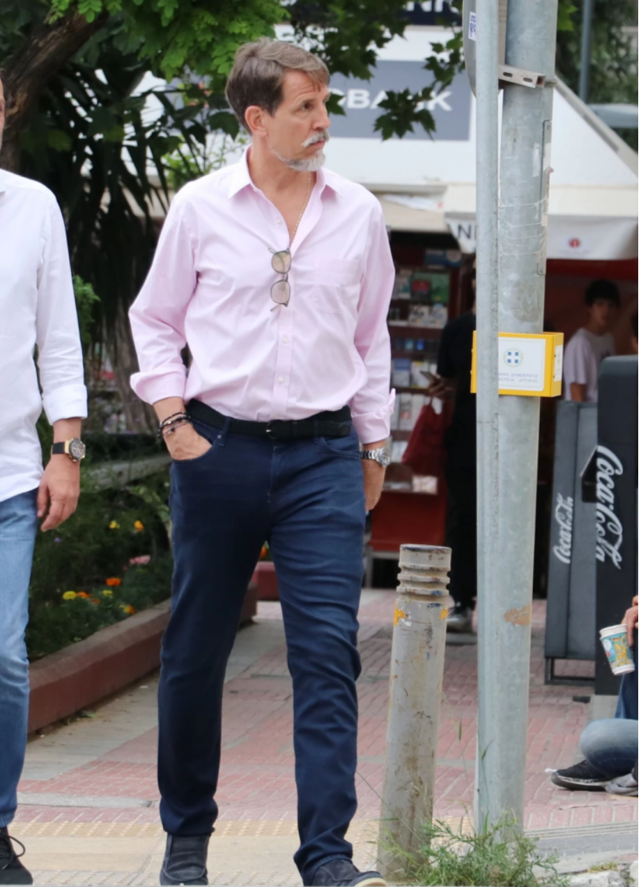 Έτσι τον εντόπισε και ο φωτογραφικός φακός τον εντόπισε στην καρδιά της Αθήνας, στο Κολωνάκι και ενώ έκανε τον περίπατό του. Ενώ ήταν και η πρώτη φορά μετά τον θάνατο του πατέρα του που τον είδαμε σε αυτούς τους χρωματισμούς και τις casual ενδυματολογικές επιλογές.