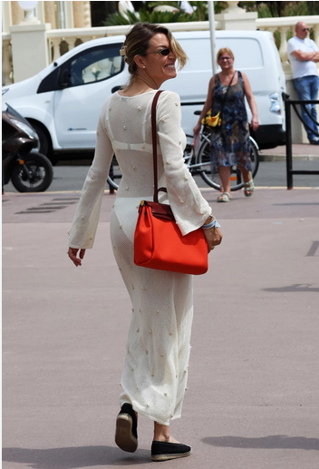 Σε μια πρωινή εμφάνιση στους δρόμους των Καννών, η μαμά του Κάρολου και της Μπιάνκα Κρασσά επέλεξε ένα ημιδιάφανο εκρού φόρεμα με δίχτυ, ενώ από μέσα διαγραφόταν το μπικίνι της.