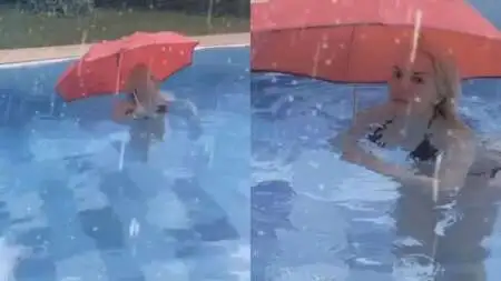 Φόρεσε λοιπόν το μπικίνι της, και κολύμπησε κρατώντας την ομπρέλα της για να… προστατευθεί από την βροχή! Η ίδια δημοσίευσε ένα βίντεο στον προσωπικό της λογαριασμό στο Instagram.