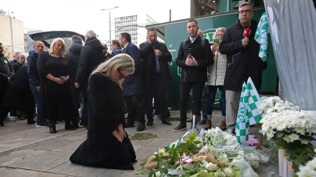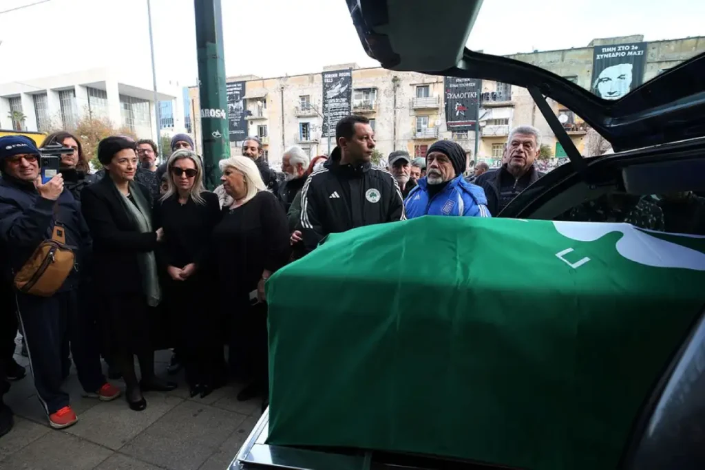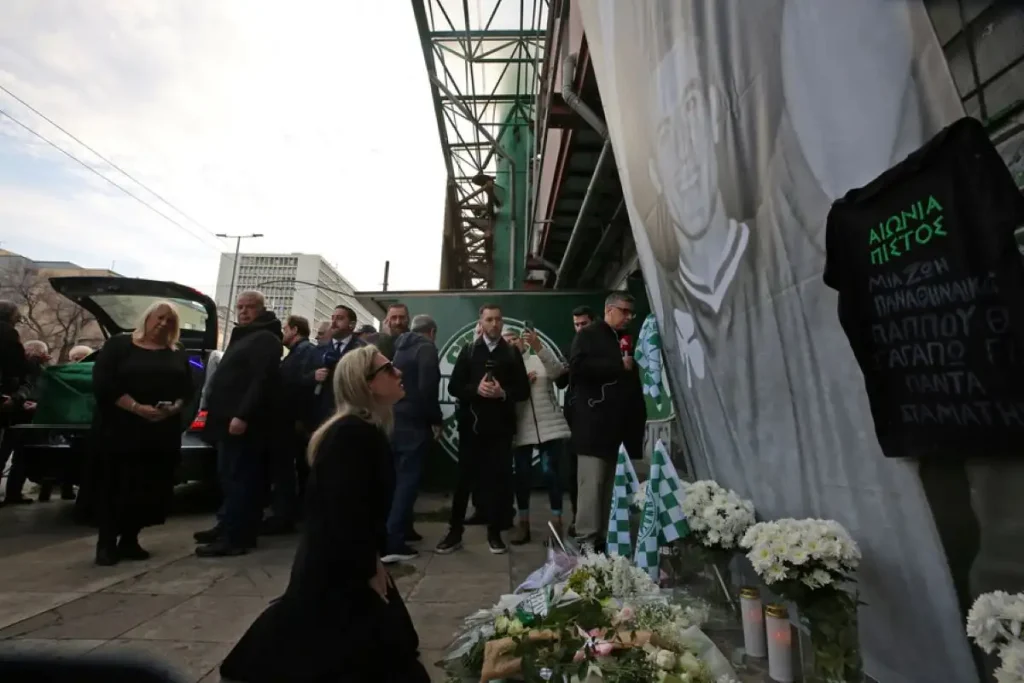 Πριν από λίγη ώρα η σορός του έφτασε στη Λεωφόρο Αλεξάνδρας, στο γήπεδο του Παναθηναϊκού, το δεύτερο “σπίτι” του Μίμη Δομάζου, εκεί όπου έζησε μερικές από τις πιο ένδοξες στιγμές του.