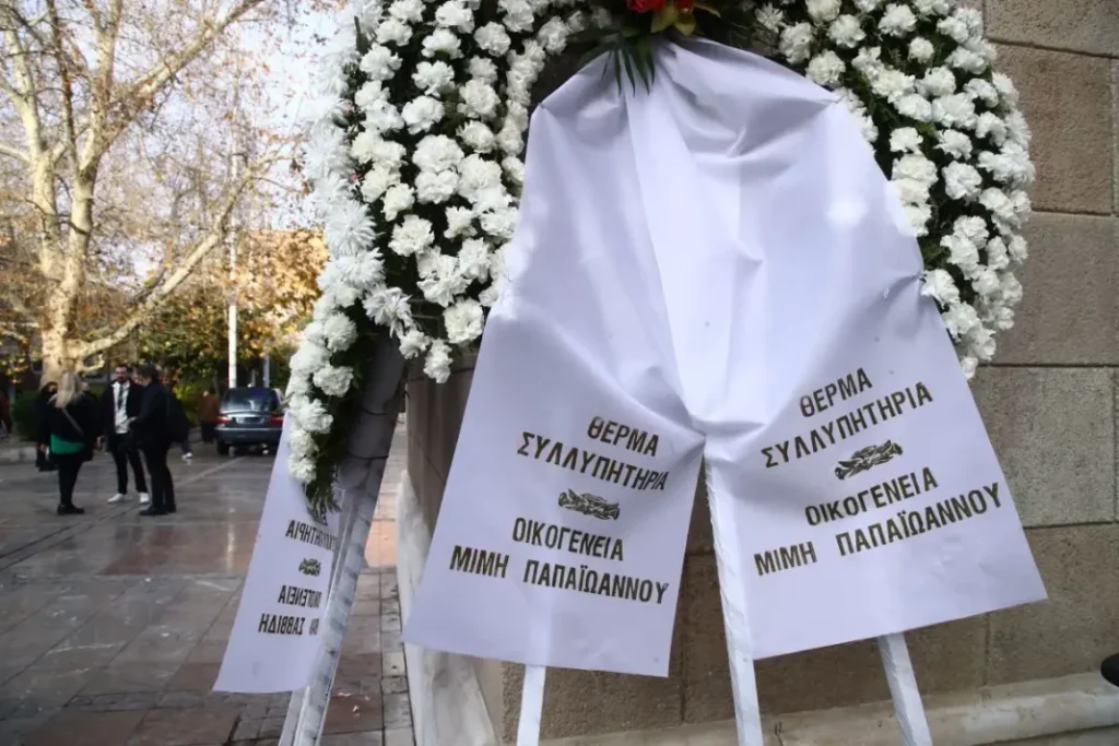 Κηδεία Μίμη Δομάζου: Το στεφάνι που έστειλαν οι κόρες και τα εγγόνια του