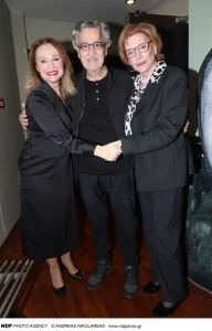 Στη φωτογραφία μετά το τέλος της παράστασης, την είδαμε να ποζάρει με τον Νίκο Γαλανό και την Νίκη Παλληκαράκη.