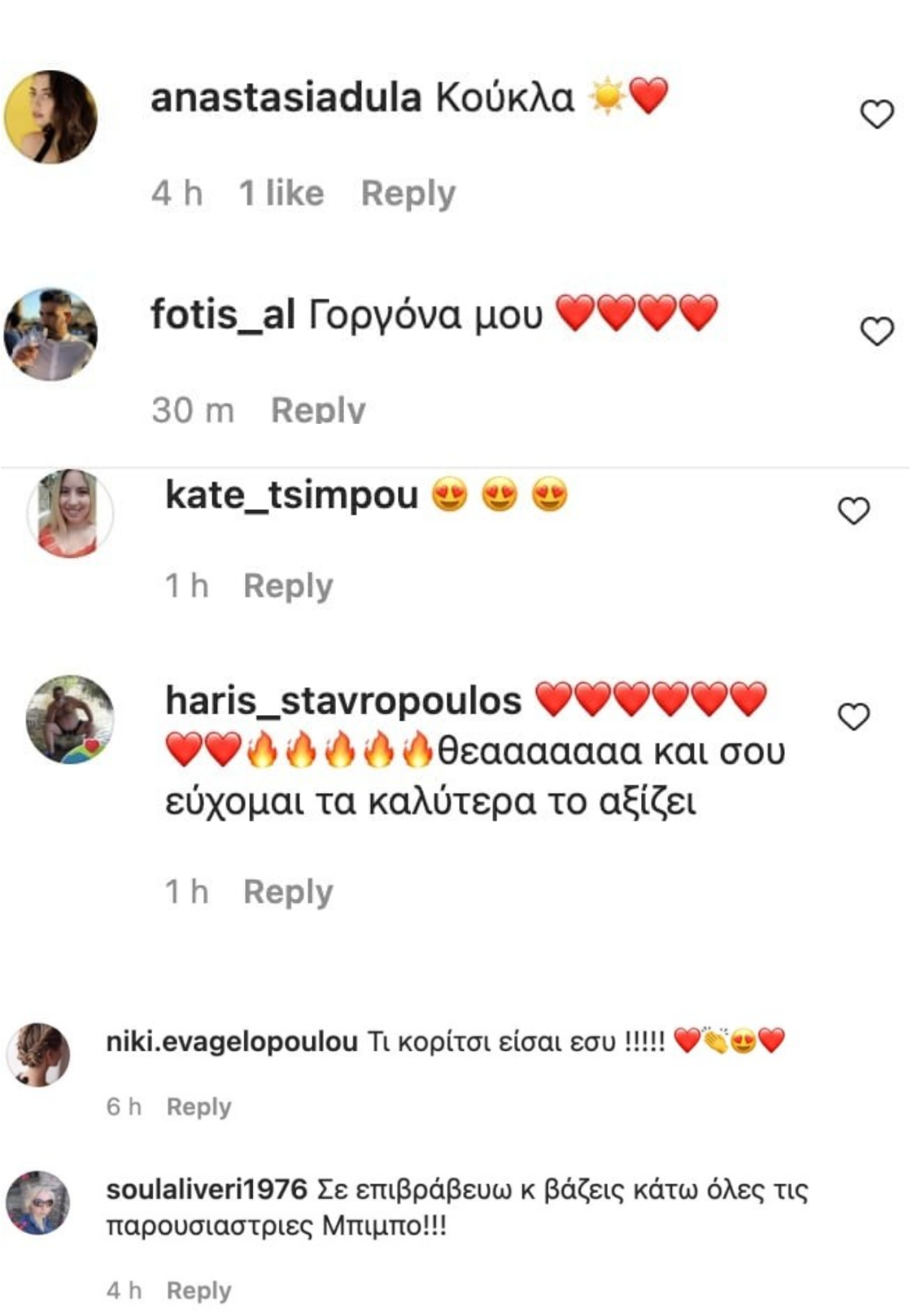 Αμέσως οι followers της, αλλά και γνωστοί celebrities φίλοι της έσπευσαν να της κάνουν like και να την αποθεώσουν στα σχόλιά τους.