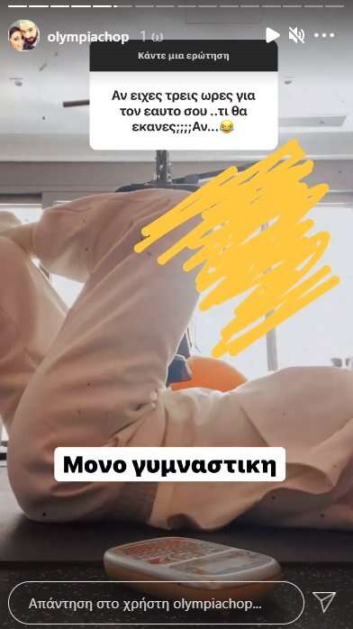 Η Ολυμπία Χοψονίδου Και μετά από 6 εγκυμοσύνες διατηρεί το σώμα της σε υπέροχη κατάσταση και παραμένει εντυπωσιακή. Μας το αποδεικνύει συχνά καθώς είναι ιδιαίτερα ενεργή στα social media και μοιράζεται στιγμές από την καθημερινότητά της. Ενώ αρκετές φορές έχει απαντήσει στους φανς της για το πως διατηρεί το σώμα της σε άριστη κατάσταση , συμβουλές διατροφής και πρόγραμμα γυμναστικής.