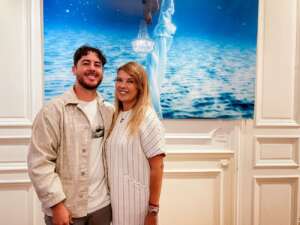 Φυσικά, από το πλευρό του δεν θα μπορούσε να λείπει η μητέρα του, Σοφία Αλιμπέρτη, η οποία και δεν έκρυψε τη συγκίνησή της όταν εκείνος πήρε το μικρόφωνο και έκανε μια ενδελεχή ξενάγηση στα έργα του.
