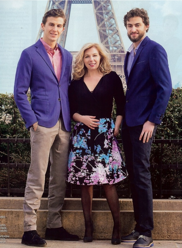 Από τη βραδιά δεν έλειπε ο σύζυγός της, Κωνσταντίνος Γρηγοριάδης, με τον οποίο έχουν αποκτήσει δυο γιους, τον Στέλιο και τον Γιώργο, οι οποίοι γεννήθηκαν στο Παρίσι και σε ηλικία 8 και 9 ετών αντίστοιχα επέστρεψαν οικογενειακώς στην Ελλάδα, όπου συνέχισαν την εκπαίδευσή τους σε γαλλόφωνο σχολείο.