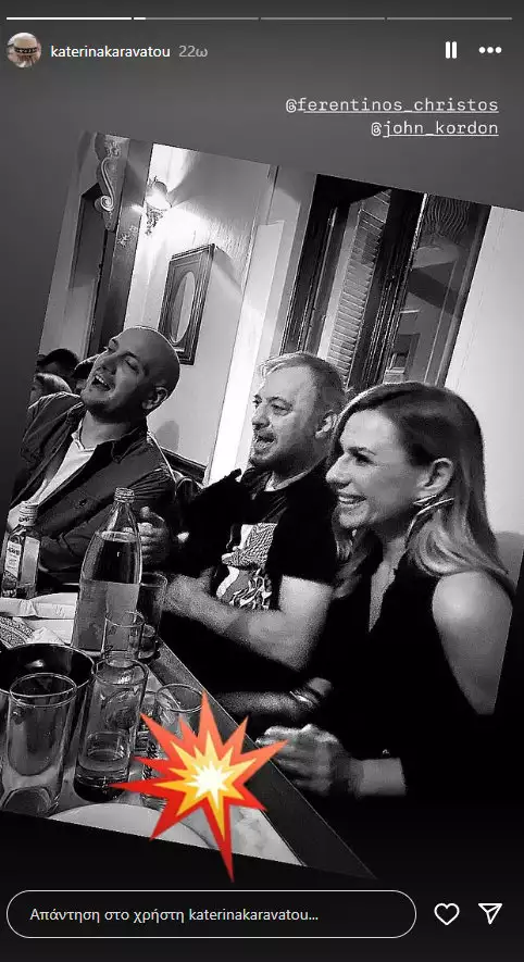 Η Κατερίνα Καραβάτου και ο Χρήστος Φερεντίνος διασκέδασαν μαζί το βράδυ του Σαββάτου με τον Γιάννη Κορδόνη στην παρέα τους.