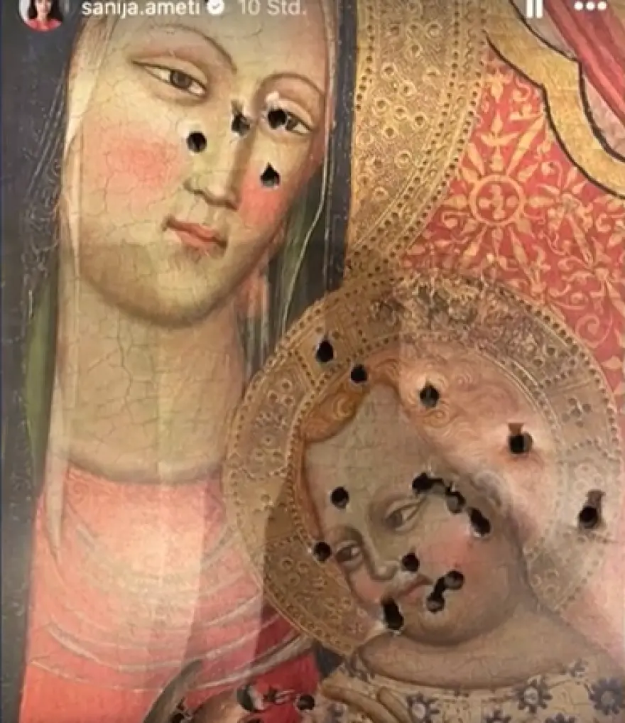 Η 32χρονη Σανίγια Αμέτι (Sanija Ameti) η οποία γεννήθηκε σε οικογένεια μουσουλμάνων και ανήκει στο κόμμα των Πρασίνων-Φιλελευθέρων, πυροβόλησε την εικόνα με αθλητικό πιστόλι, προκαλώντας αντιδράσεις για τα σημάδια από σφαίρες στα πρόσωπα της Παναγίας και του Ιησού.