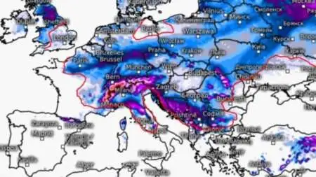 Σύμφωνα με την σελίδα πρόγνωσης καιρού Weather Analysis, το 80% της Ευρώπης θα δεχθεί χιονοπτώσεις. Τα δεδομένα ως έχουν (βλ χάρτη) θέλουν όλες τις μεγάλες πόλεις, από Παρίσι μέχρι Βουδαπέστη, από Λονδίνο μέχρι Βαρσοβία, να ντύνονται στα λευκά. Ακόμη και η Ρώμη, παίζει σε πολλά σενάρια πυκνών χιονοπτώσεων. Στην χώρα μας, αυτό σημαίνει σε πρώτη φάση νοτιάδες, υγρασία και κυρίως, κατακόρυφη άνοδο της θερμοκρασίας μαζί με κάποιες βροχές στην δυτική χώρα.