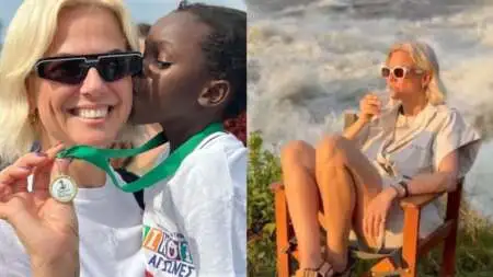 Η γνωστή σχεδιάστρια, βρέθηκε στην Ουγκάντα, την πατρίδα της κόρης της, Έιντα και επισκέφτηκε τους καταρράκτες στο Εθνικό Πάρκο Murchison Falls. Mάλιστα, φωτογραφήθηκε, με φόντο το μαγευτικό τοπίο και δημοσίευσε τα στιγμιότυπα στον προσωπικό της λογαριασμό στο Instagram.