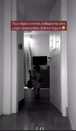 Ο Φώτης χάρηκε τόσο πολύ που είδε το νονό του αλλά και το δώρο που του έκανε, που άρχισε να «αλωνίζει» το σπίτι κρατώντας ανά χείρας την κιθάρα που του πήρε ο τραγουδιστής.