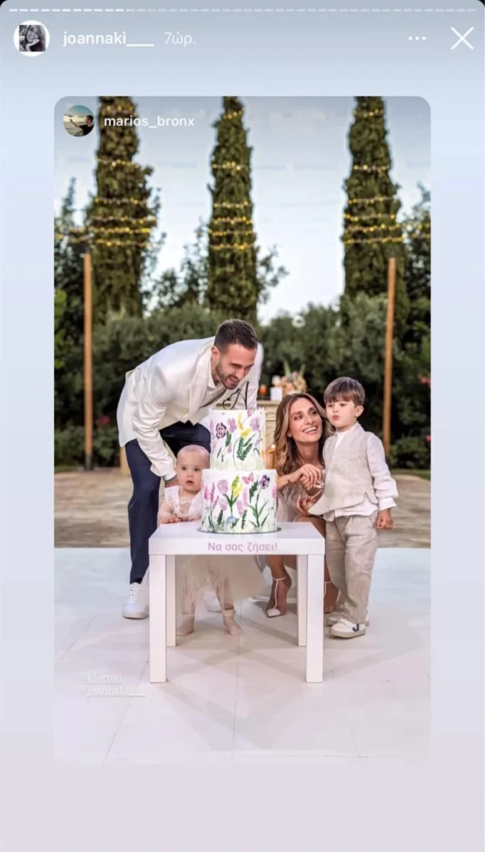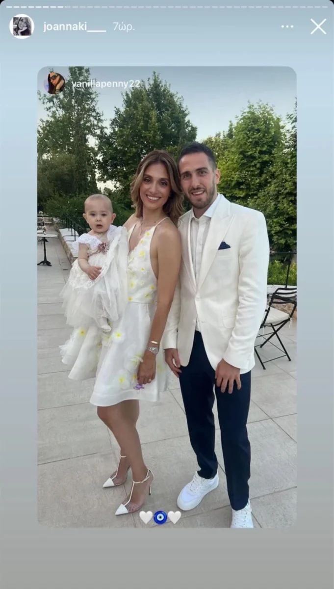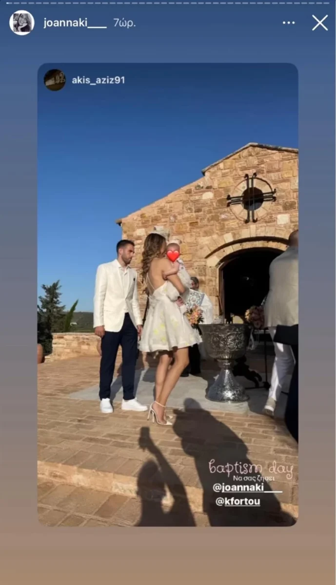 Μετά το μυστήριο και το γλέντι οι δύο γονείς δημοσίευσαν στα προφίλ τους στα social media διάφορες φωτογραφίες από το ευχάριστο αυτό γεγονός, κάνοντας repost όλες τις αναρτήσεις των φίλων τους και καλεσμένων τους, ανάμεσα στους οποίους ήταν και η Ολυμπία Χοψονίδου με τον Βασίλη Σπανούλη.