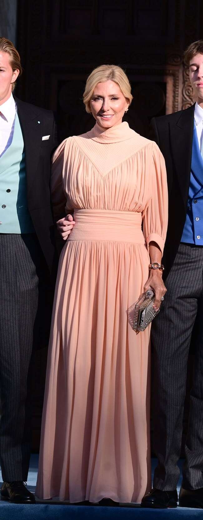 Το μάξι αρχαιοελληνικό φόρεμα της Μαρί Σαντάλ, η οποία πήγε στην εκκλησία με τους τέσσερις γιους της.