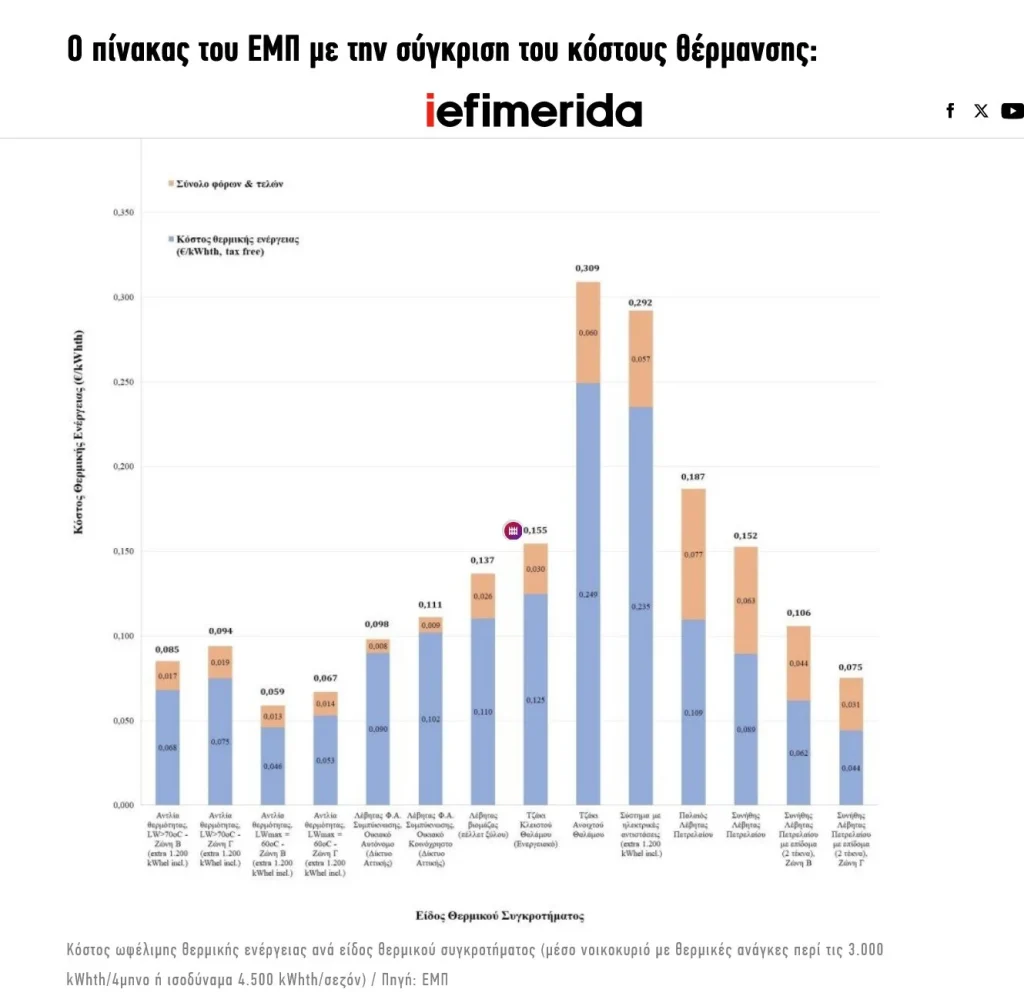 Η ακριβότερη και η φθηνότερη μορφή θέρμανσης – Μεγάλη μελέτη του ΕΜΠ απαντά στο ερώτημα – Στο ερώτημα τι συμφέρει περισσότερο για θέρμανση απαντά η μελέτη που πραγματοποίησε το Εθνικό Μετσόβιο Πολυτεχνείο (ΕΜΠ). Μέσω της έρευνας έγινε σύγκριση όλων των τεχνολογιών θέρμανσης που χρησιμοποιεί ένα μέσο νοικοκυριό.