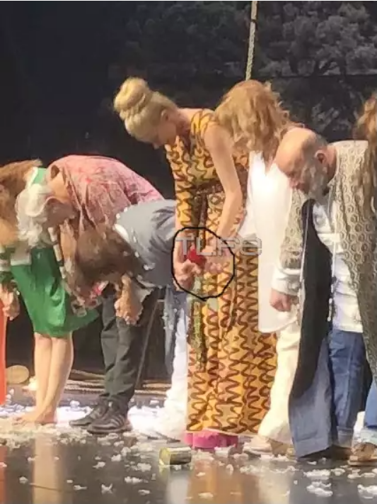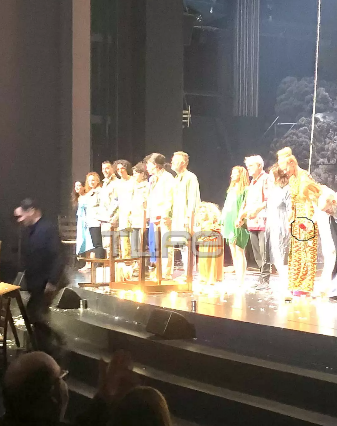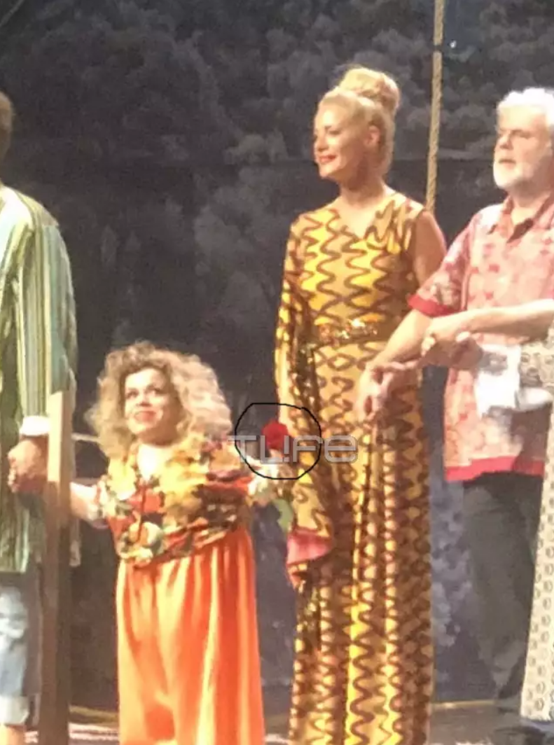 Στο τέλος μάλιστα της παράστασης και συγκεκριμένα τη στιγμή της υπόκλισης, ο Μιχάλης Χατζηγιάννης σηκώθηκε από τη θέση του και ανέβηκε στη σκηνή, προσφέροντας ένα κόκκινο τριαντάφυλλο στη Ζέτα Μακρυπούλια, που το δέχτηκε με μεγάλη χαρά.