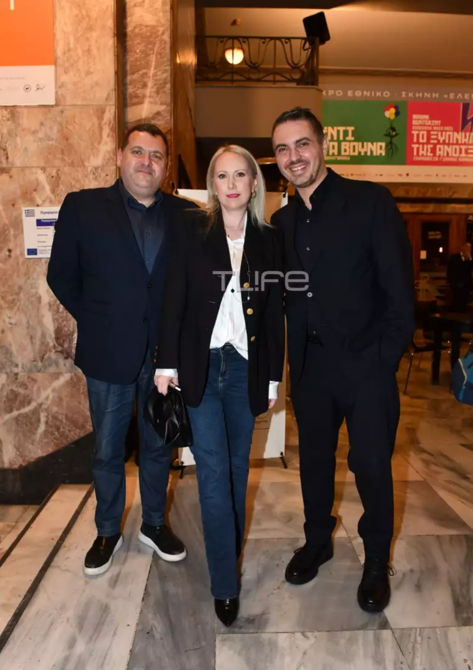 Οι τρεις τους αρχικά συνομίλησαν για λίγα λεπτά έξω από τον χώρο του θεάτρου και ακολούθως κατευθύνθηκαν στην αίθουσα και παρακολούθησαν την παράσταση με μεγάλο ενδιαφέρον, από την πρώτη σειρά.