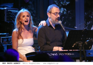 Ο Σταύρος Ξαρχάκος παρουσίασε μία ξεχωριστή μουσική παράσταση, στο θέατρο “Άλσος”, χθες, Πέμπτη, έχοντας στο πλευρό του τη σύζυγό του, Ηρώ Σαΐα, η οποία εμφανίστηκε με λευκό στράπλες φόρεμα.