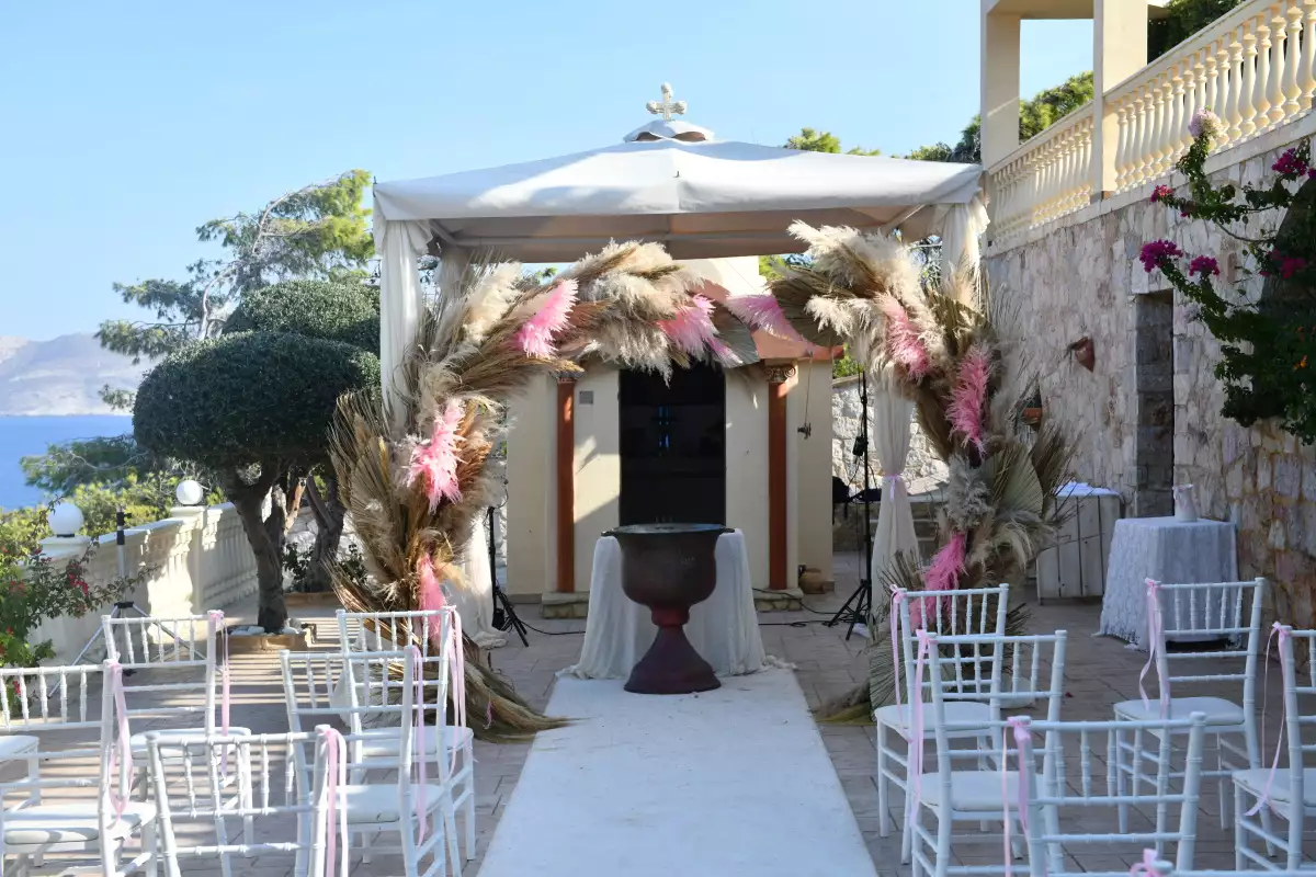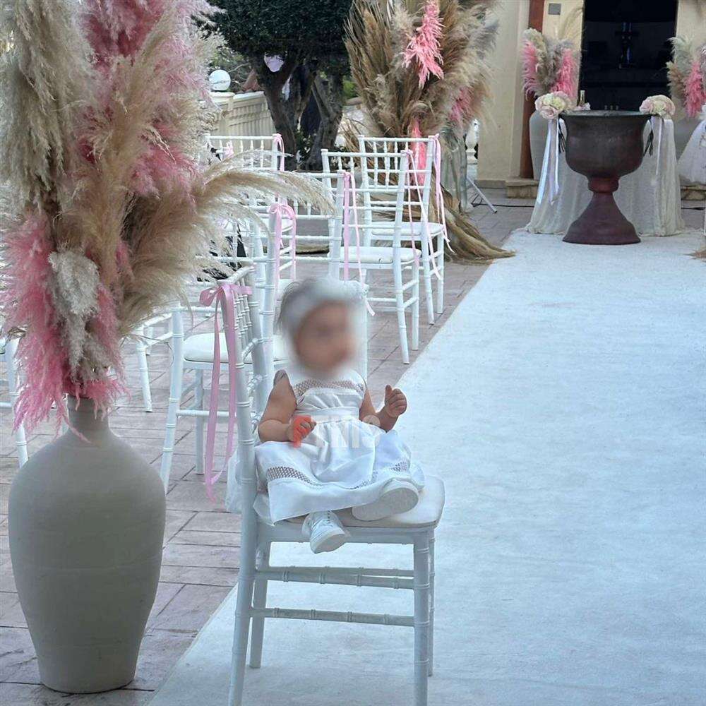 To FTHIS βρέθηκε στη βάπτιση της εγγονής της Άντζελας Δημητρίου και σας εξασφάλισε αποκλειστικές φωτογραφίες. Η διακόσμηση στο εκκλησάκι ήταν σε μπεζ και ροζ αποχωρήσεις, ενώ ροζ φόρεμα επέλεξε και η μαμά, Όλγα Κιουρτσάκη.