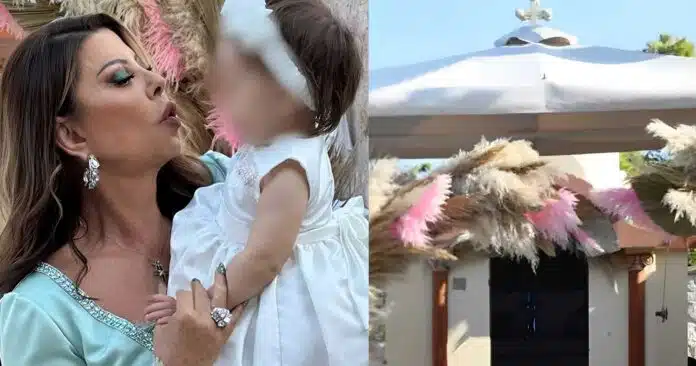 To FTHIS βρέθηκε στη βάπτιση της εγγονής της Άντζελας Δημητρίου και σας εξασφάλισε αποκλειστικές φωτογραφίες. Η διακόσμηση στο εκκλησάκι ήταν σε μπεζ και ροζ αποχωρήσεις, ενώ ροζ φόρεμα επέλεξε και η μαμά, Όλγα Κιουρτσάκη.