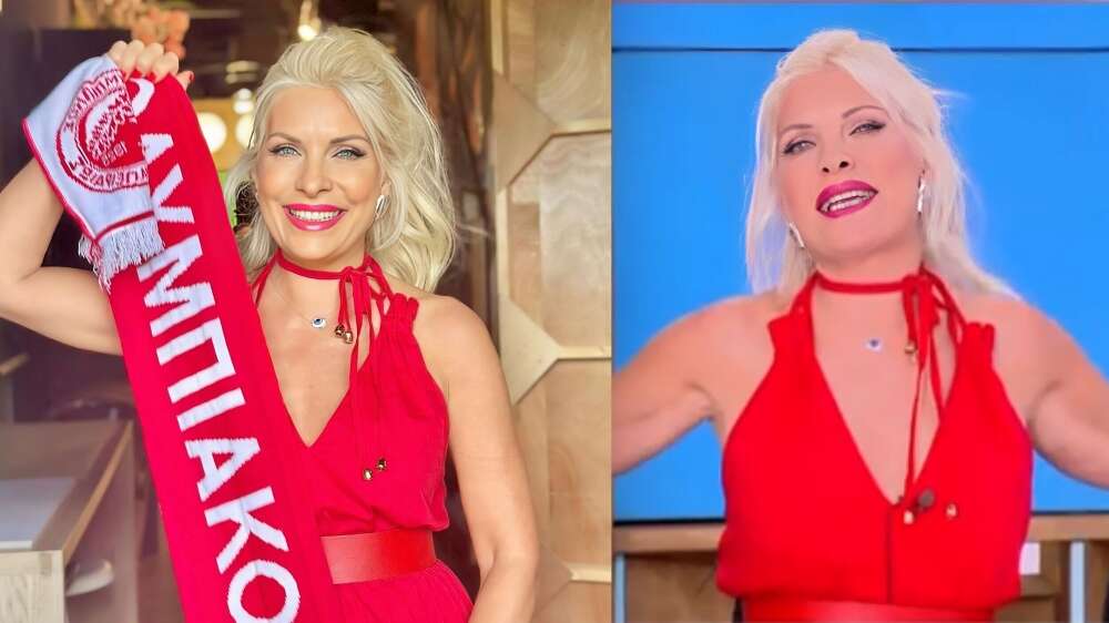 Η Ελένη Μενεγάκη εμφανίστηκε στα κόκκινα στην σημερινή εκπομπή της μετά την μεγάλη νίκη του Ολυμπιακού απέναντι στην Φιορτεντίνα.