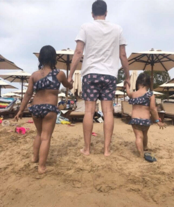 Άλλη μία παλαιότερη φωτογραφία είναι η παρακάτω όπου απεικονίζει τον μπαμπά με τις κόρες στην παραλία πιασμένοι χέρι – χέρι φορώντας ασορτί μαγιό.