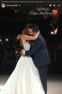 Ειδικότερα, η παρουσιάστρια του OPEN, κλείνει έξι χρόνια γάμου, καθώς ανέβηκε τα σκαλιά της εκκλησίας στις 16 Σεπτεμβρίου του 2017.