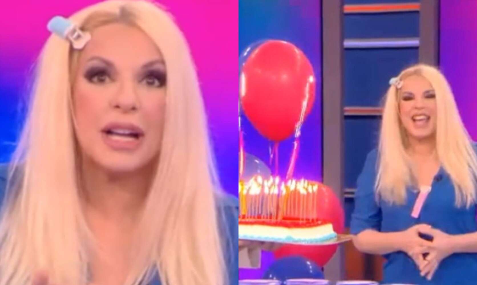 Έπειτα, μπήκαν στο πλατό οι συνεργάτες της με μπαλόνια και μία εντυπωσιακή τούρτα για να της ευχηθούν!
