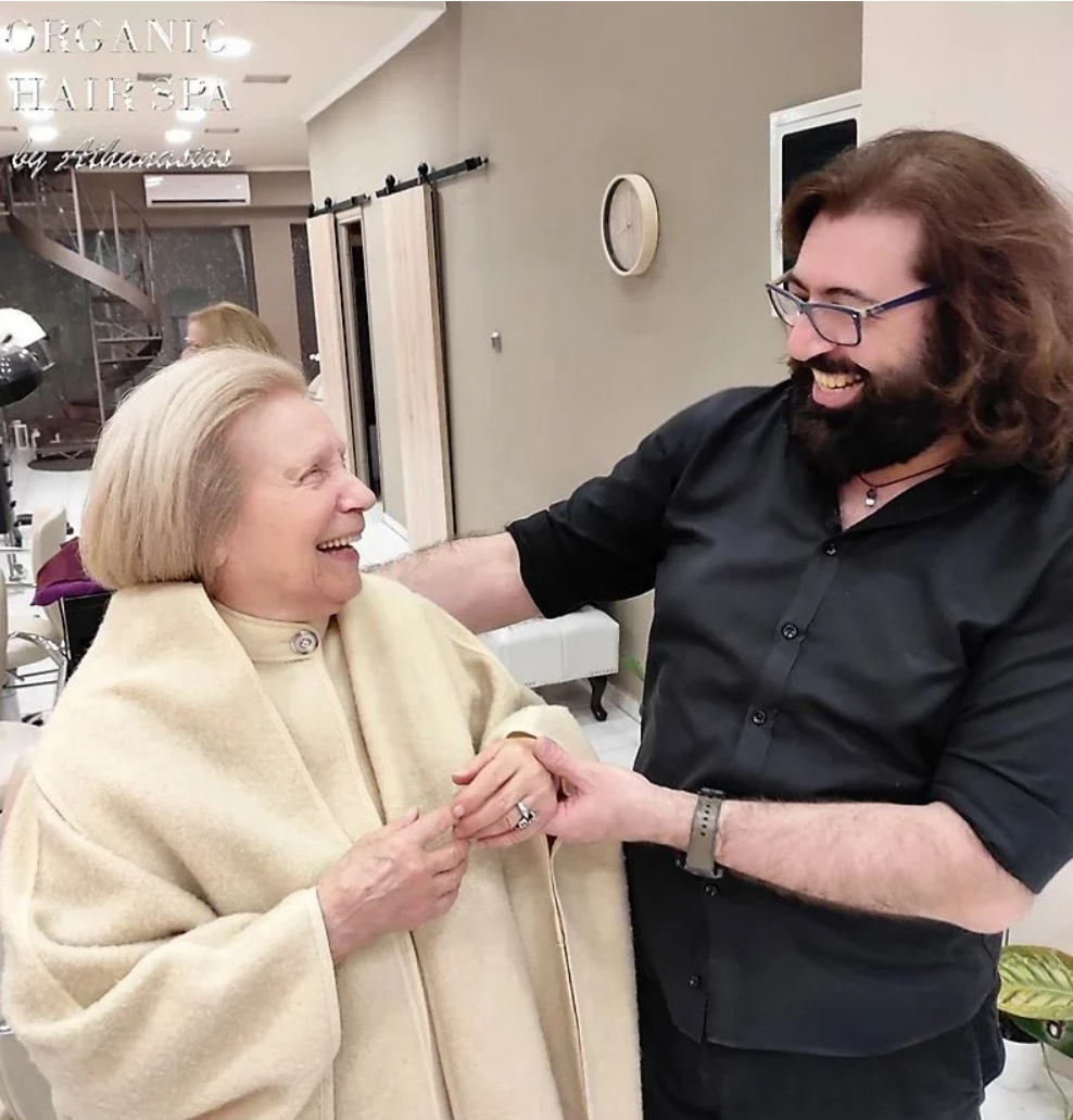 Σήμερα στα 90 της χρόνια συνεχίζει να είναι μια όμορφη κυρία που περιποιείται τον εαυτό της. Πρόσφατα επισκέφθηκε γνωστό κομμωτήριο για να βάψει τα μαλλιά της και πόζαρε με τον κομμωτή της, Αθανάσιο.