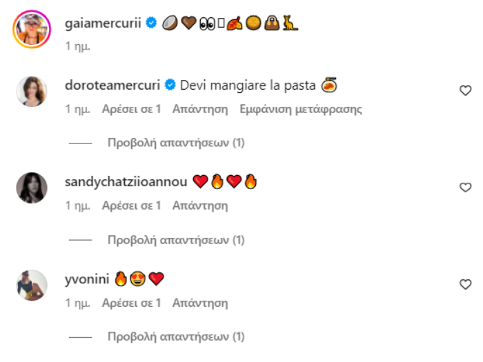 Μεταξύ εκείνων που της σχολίασαν ήταν η σύζυγος του Αντώνη Ρέμου, Υβόννη Μπόσνιακ, αλλά φυσικά και η περήφανη μαμά της, Δωροθέα Μερκούρη.