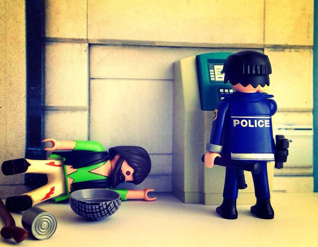 Χρησιμοποιώντας τα πλαστικά παιχνίδια playmobil των παιδιών του, έκανε ευφάνταστες συνθέσεις-απεικονίσεις της Ελλάδας της κρίσης και της αντίστασης και όπως υπογράμμιζε «χρησιμοποιώ ένα σύμβολο της αθωότητάς μας για να μιλήσω για όλα τα απάνθρωπα και σκληρά που συμβαίνουν γύρω μας».