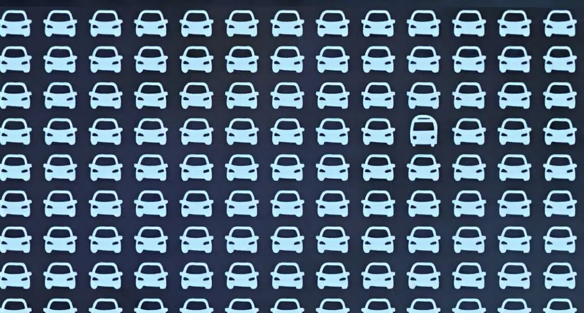 Μια απλή αλλά έξυπνη οπτική πρόκληση έχει γίνει viral: Ανάμεσα σε δεκάδες πανομοιότυπα αυτοκίνητα, υπάρχει ένα και μόνο λεωφορείο. Σύμφωνα με το κείμενο της εικόνας, μόνο οι διάνοιες μπορούν να το εντοπίσουν.