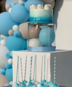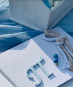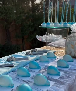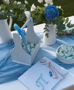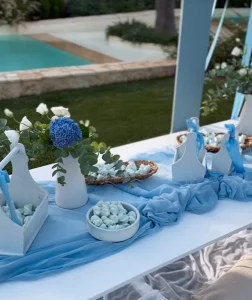 Όλος ο στολισμός του χώρου που πραγματοποιήθηκε η βάφτιση του μικρού ήταν σε μπλε και λευκές αποχρώσεις.