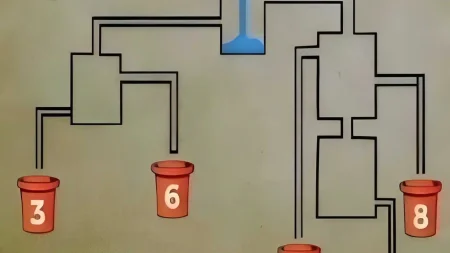 Ωστόσο, αυτό το παζλ έχει να κάνει με το πώς συνδέονται οι σωλήνες. Ορισμένα μονοπάτια είναι εντελώς φραγμένα, εμποδίζοντας το νερό να φτάσει σε ορισμένους κάδους. Εάν δεν το λάβετε υπόψη, πιθανότατα θα επιλέξετε τη λάθος απάντηση.