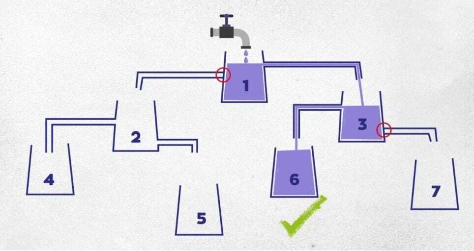 Παρατηρώντας με προσοχή όλες τις δεξαμενές και δημιουργώντας στο μυαλό σας την διαδρομή που θα ακολουθήσει το νερό θα καταλήξετε ότι η δεξαμενή που θα γεμίσει πρώτη είναι η 6.