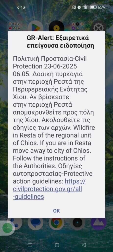 Υπενθυμίζεται ότι διπλό μήνυμα εκκένωσης μέσω του 112 εστάλη το βράδυ για τον Βροντάδο. Πρώτα στις 21:30 για την περιοχή του Αγίου Μακαρίου και στη συνέχεια, στις 22:30, για τον Άγιο Μάρκο.