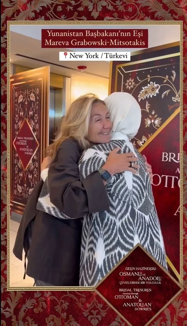 Ευκαιρία να τα πούνε από κοντά είχαν χθες οι δύο πρώτες κυρίες της Ελλάδας και της Τουρκίας Μαρέβα Μητσοτάκη και Εμινέ Ερντογάν, σε επίδειξη παραδοσιακών οθωμανικών νυφικών στο “σπίτι της Τουρκίας”, στη Νέα Υόρκη.