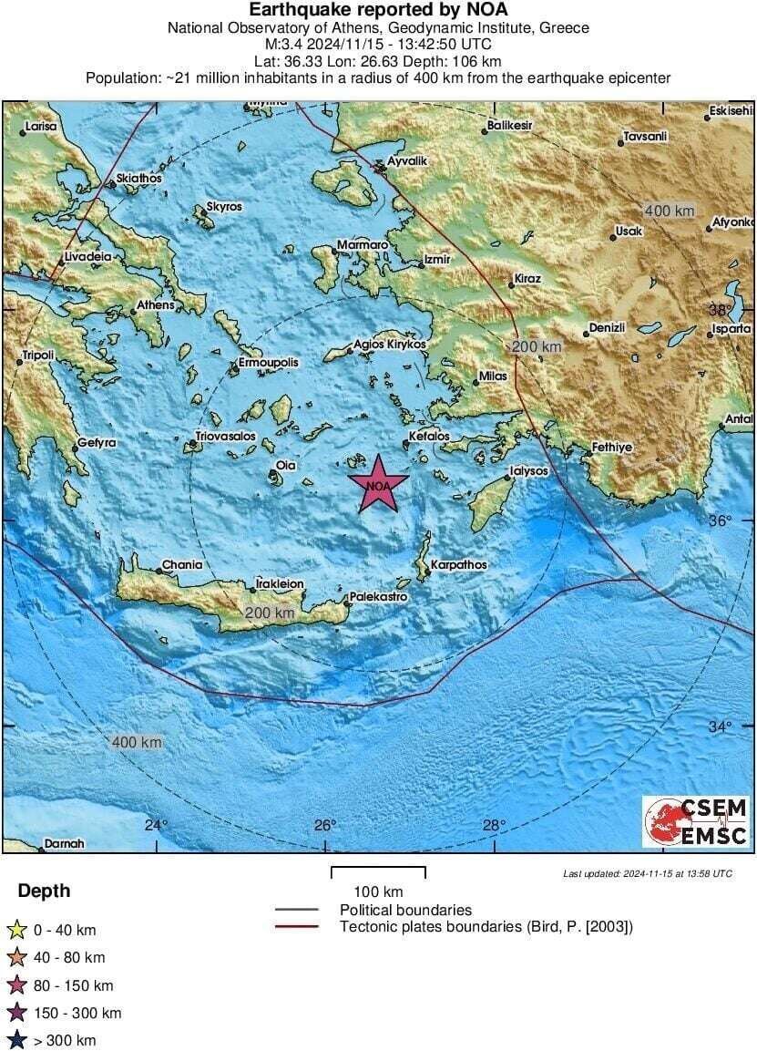 Σεισμός μεγέθους 3,7 Ρίχτερ σημειώθηκε στα Δωδεκάνησα, και συγκεκριμένα 35 χιλιόμετρα νότια-νοτιοανατολικά της Αστυπάλαιας.
