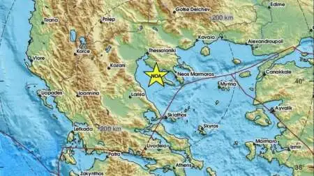 Το ακριβές επίκεντρο τη δόνησης εντοπίζεται στα 15 χλμ. νότια – νοτιοδυτικά των Νέων Μουδανιών.