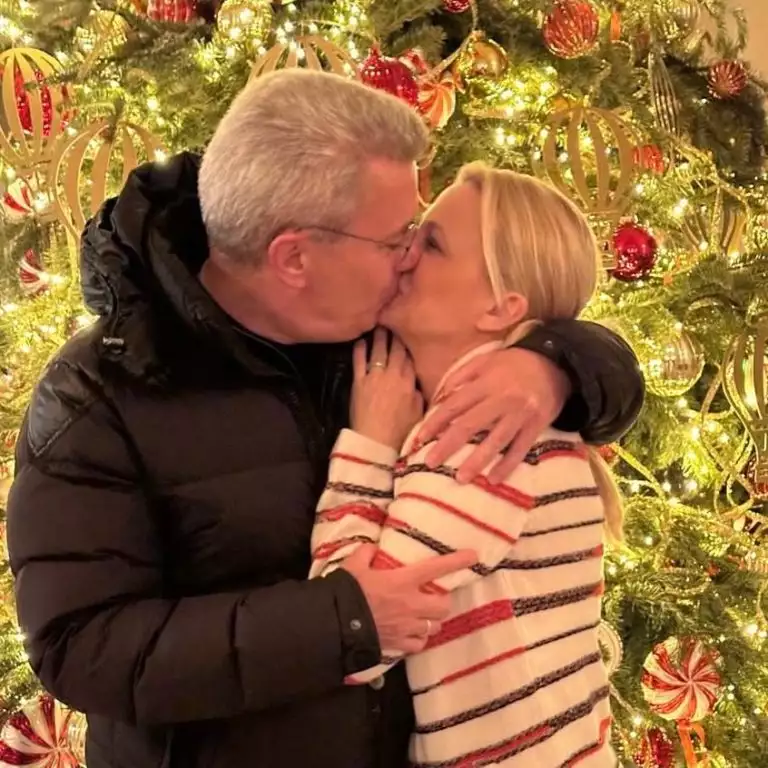 Σε ένα από τα επόμενα στιγμιότυπα, ο Νίκος Χατζηνικολάου ανταλλάσσει ένα παθιασμένο φιλί με τη σύζυγό του, Κρίστη Τσολακάκη κάτω από το Χριστουγεννιάτικο δέντρο.