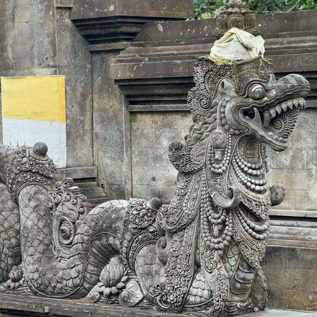 Όπως παρακολουθούμε στα στιγμιότυπα, ο Νίκος Μουτσινάς φόρεσε την χαρακτηριστική πράσινη ενδυμασία που φορούν οι επισκέπτες στον Tirta Empul Holy Water Temple και έβρεξε το κεφάλι του στις πηγές.